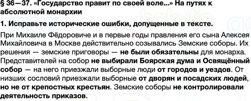 1. Исправьте исторические ошибки, допущенные в тексте.