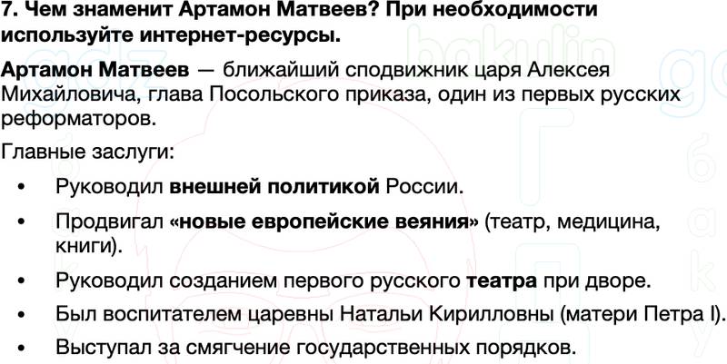 7. Чем знаменит Артамон Матвеев? При необходимости используйте интернет-ресурсы.
