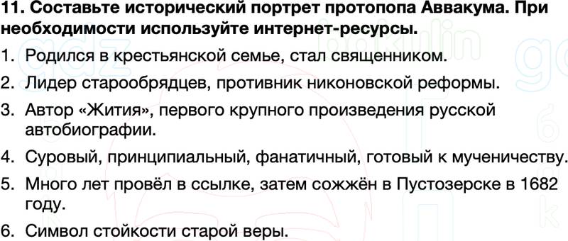 11. Составьте исторический портрет протопопа Аввакума. При необходимости используйте интернет-ресурсы.