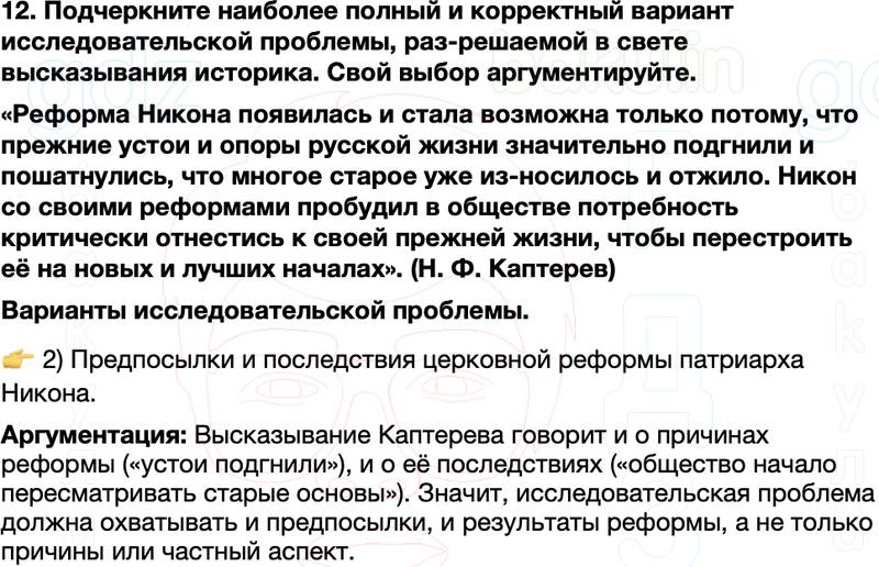 12. Подчеркните наиболее полный и корректный вариант исследовательской проблемы, разрешаемой в свете высказывания историка. Свой выбор аргументируйте.