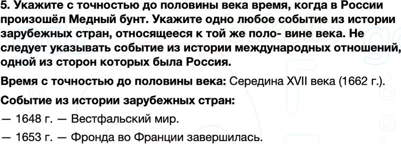 5. Укажите с точностью до половины века время, когда в России произошёл Медный бунт. Укажите одно любое событие из истории зарубежных стран, относящееся к той же половине века. Не следует указывать событие из истории международных отношений, одной из сторон которых была Россия.
