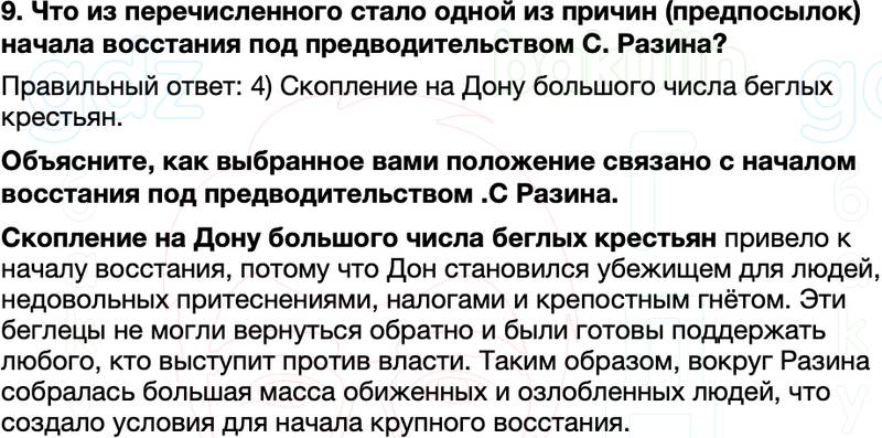 9. Что из перечисленного стало одной из причин (предпосылок) начала восстания под предводительством С. Разина?