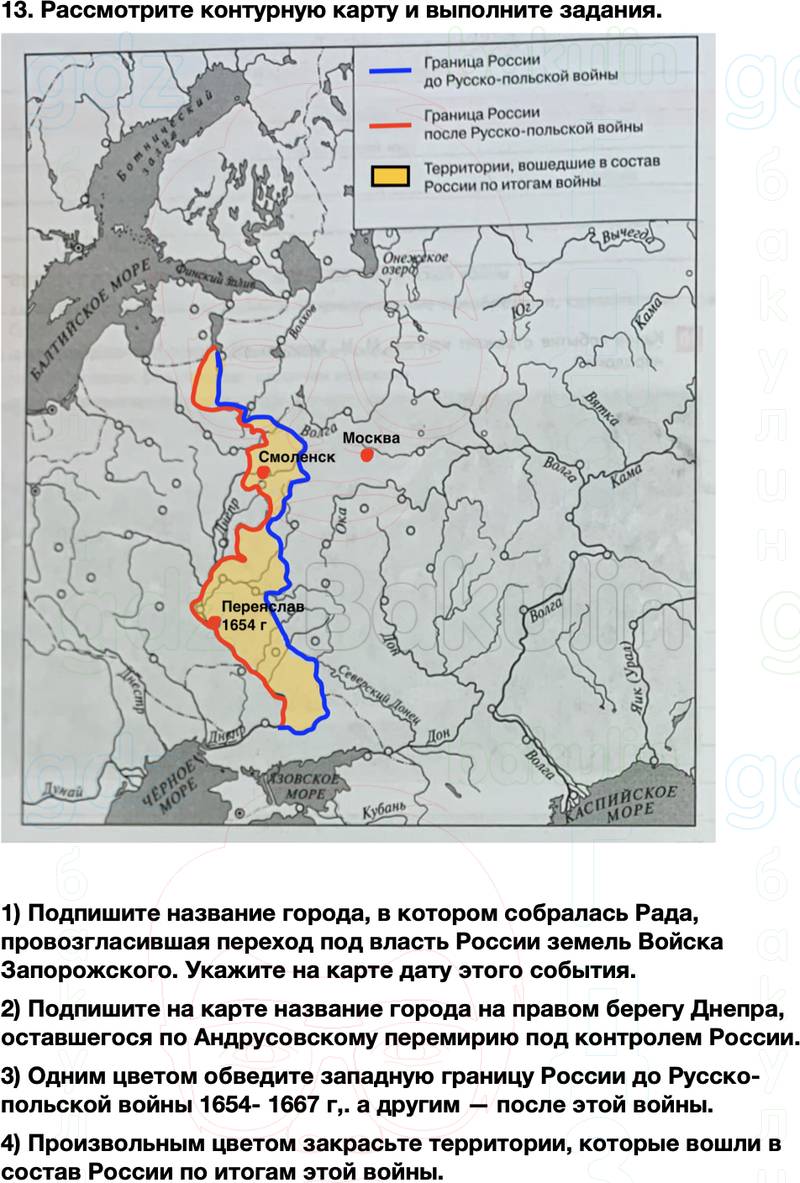 2) Подпишите на карте название города на правом берегу Днепра, оставшегося по Андрусовскому перемирию под контролем России.