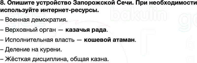 8. Опишите устройство Запорожской Сечи. При необходимости используйте интернет-ресурсы.