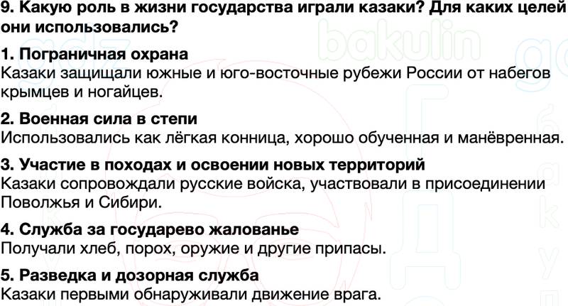 9. Какую роль в жизни государства играли казаки? Для каких целей они использовались?