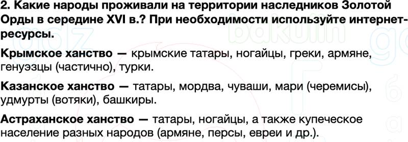 2. Какие народы проживали на территории наследников Золотой Орды в середине XVI в.? При необходимости используйте интернет-ресурсы.