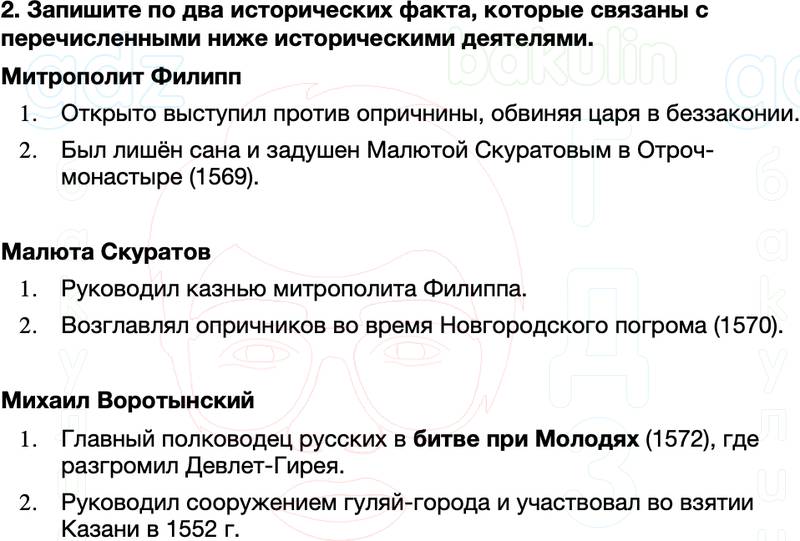 2. Запишите по два исторических факта, которые связаны с перечисленными ниже историческими деятелями.