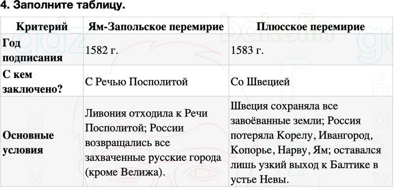 Правильный ответ к заданию ГДЗ История России Рабочая тетрадь 7 класс Пазин, Андреев