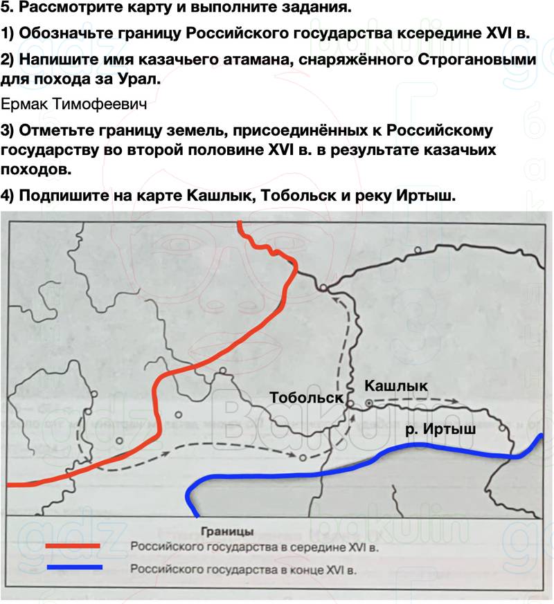 4) Подпишите на карте Кашлык, Тобольск и реку Иртыш.