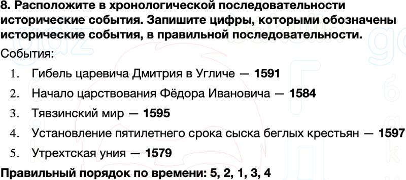 8. Расположите в хронологической последовательности исторические события. Запишите цифры, которыми обозначены исторические события, в правильной последовательности.