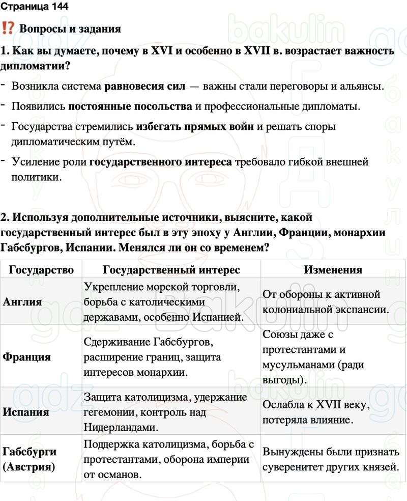 2. Используя дополнительные источники, выясните, какой государственный интерес был в эту эпоху у Англии, Франции, монархии Габсбургов, Испании. Менялся ли он со временем?