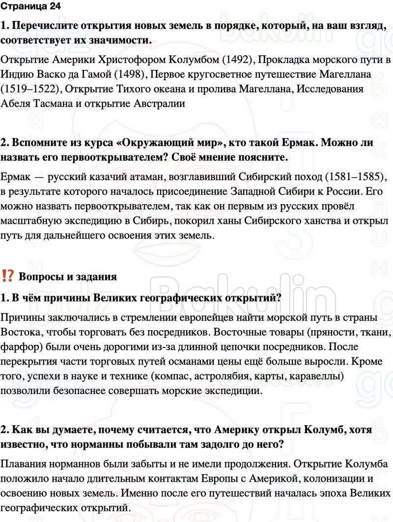 2. Вспомните из курса «Окружающий мир», кто такой Ермак. Можно ли назвать его первооткрывателем? Своё мнение поясните.