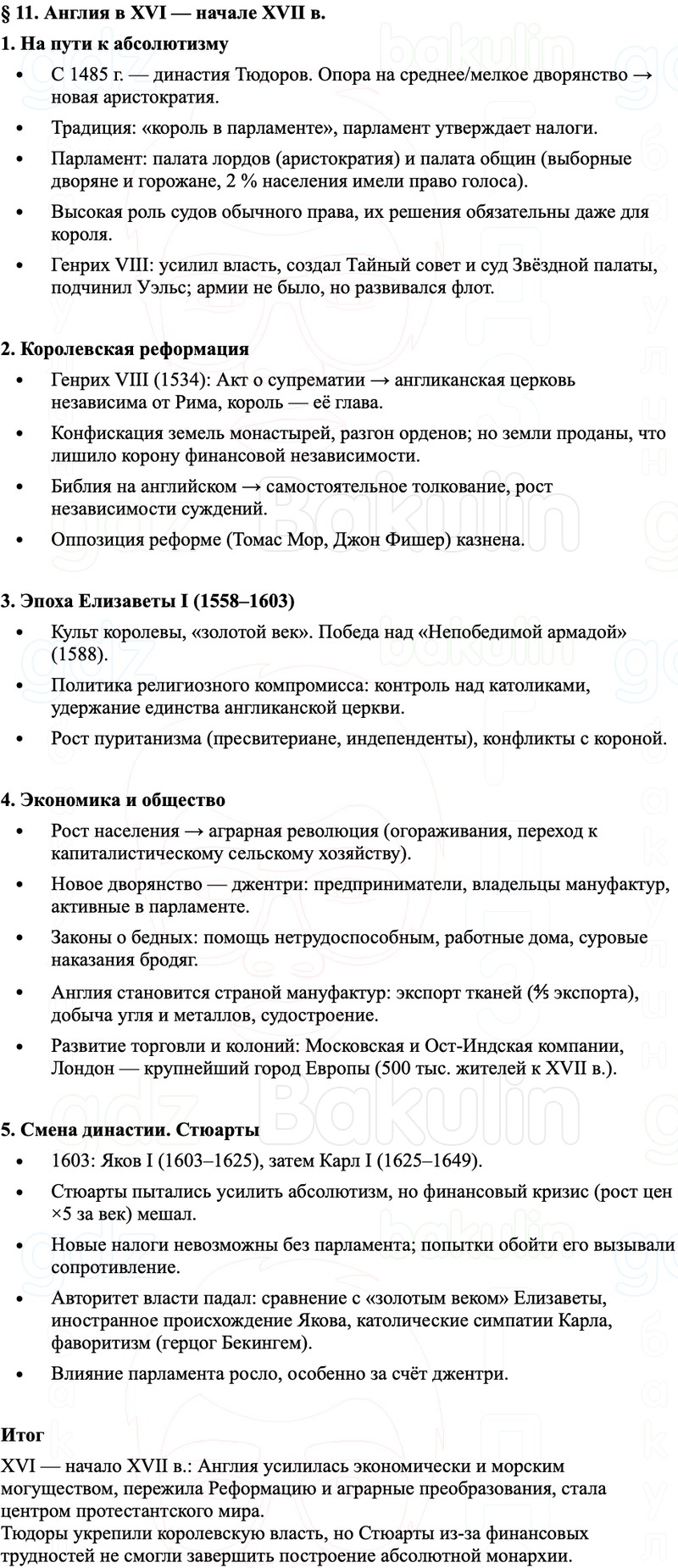 Краткое содержание и пересказ Параграф 11 Англия XVI — начале XVII в.