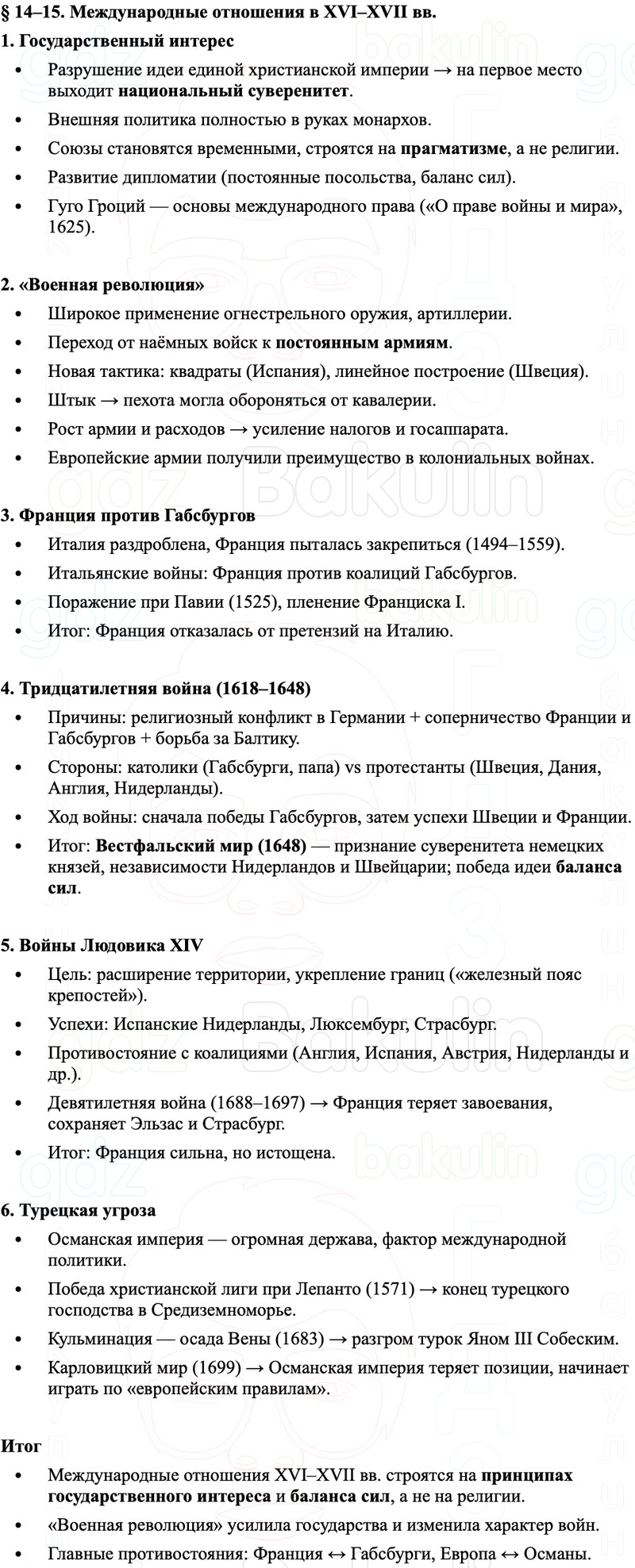 Краткое содержание и пересказ Параграф 14–15 Международные отношения XVI–XVII вв.