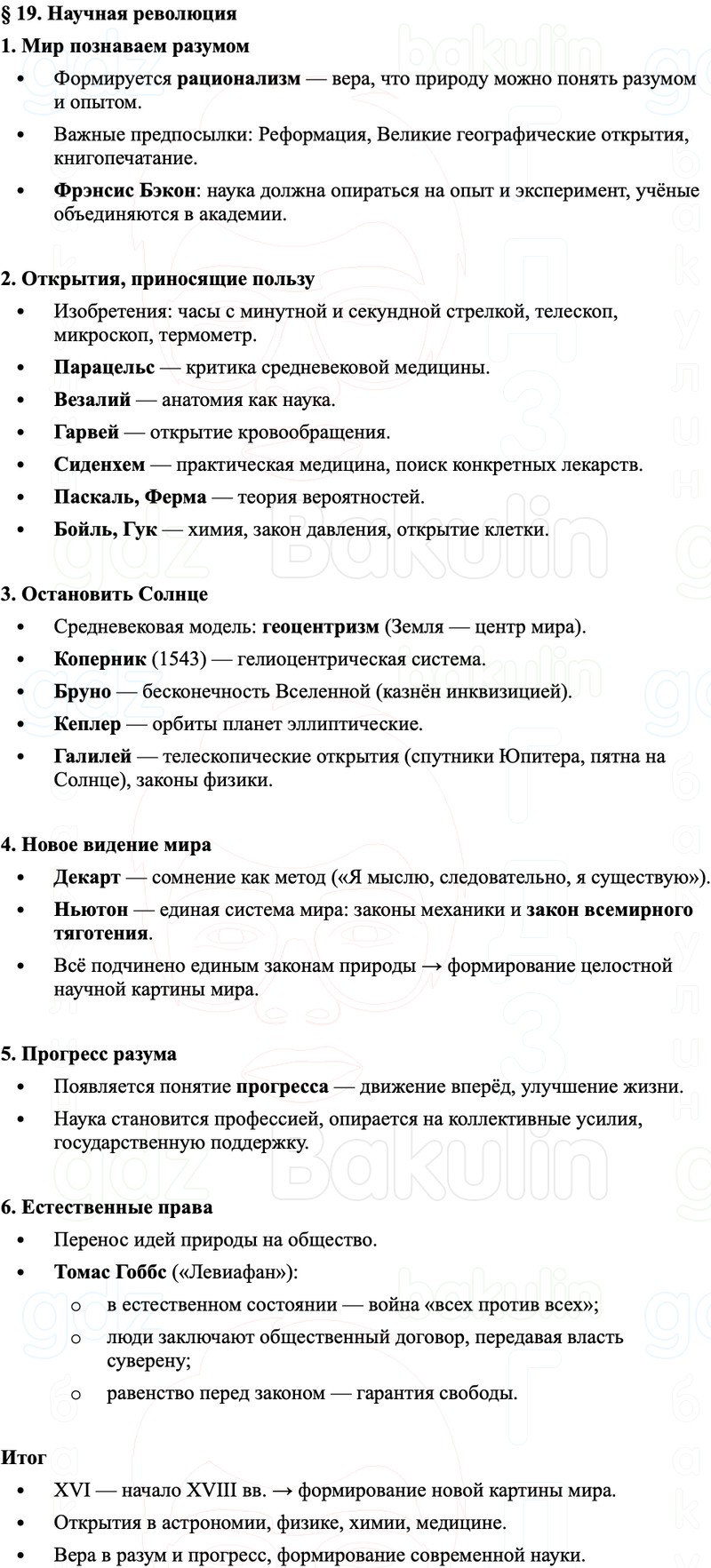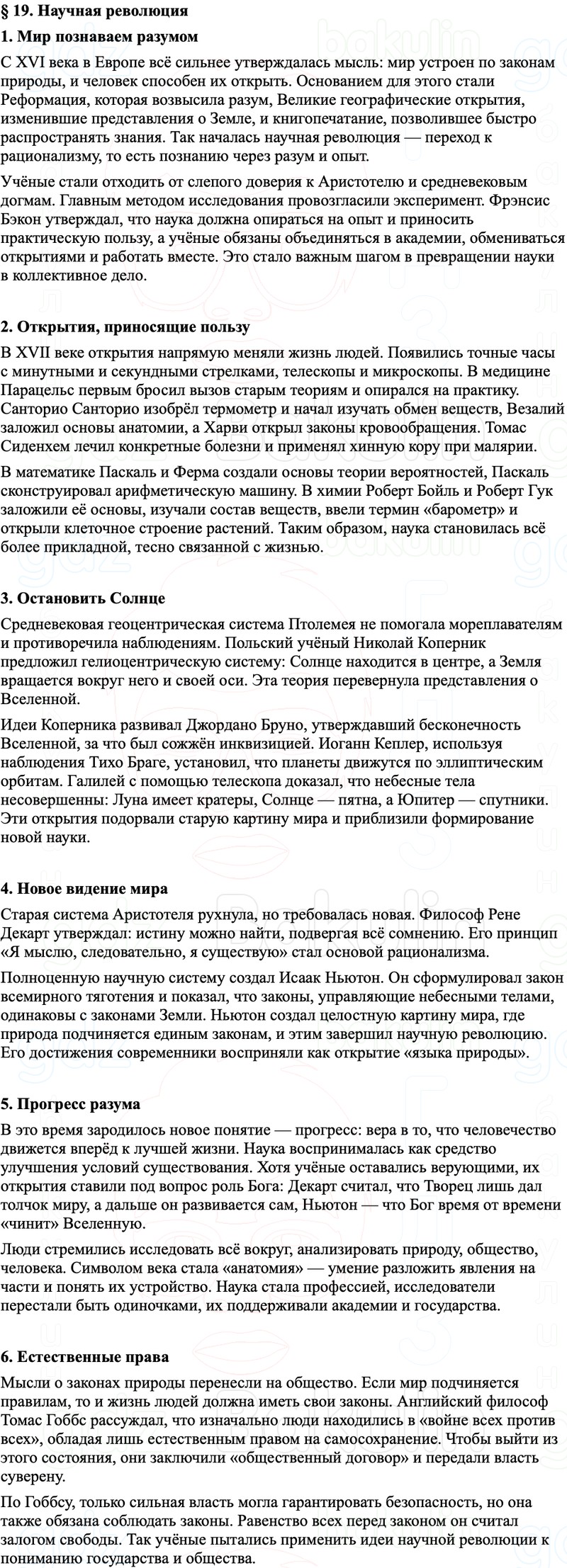 Краткое содержание и пересказ Параграф 19 Научная революция