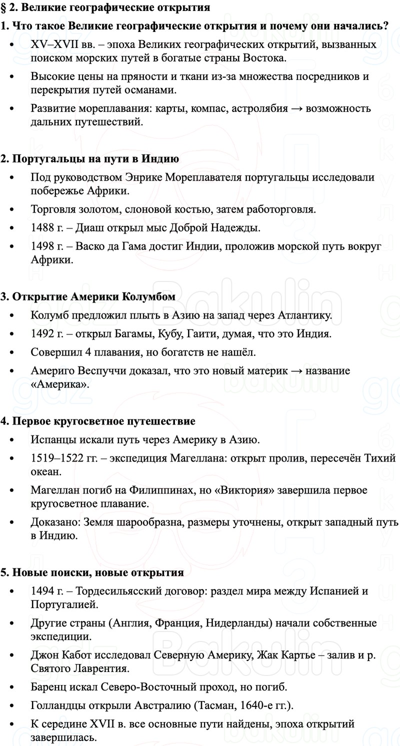 Краткое содержание и пересказ Параграф 2 Великие географические открытия