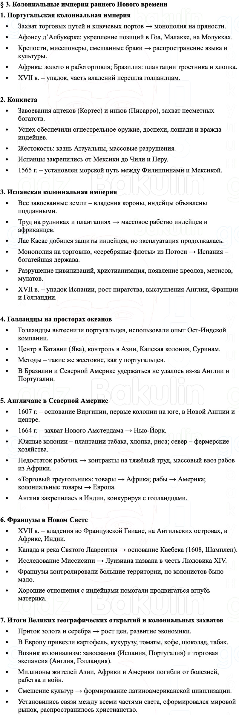 Краткое содержание и пересказ Параграф 3 Колониальные империи раннего Нового времени