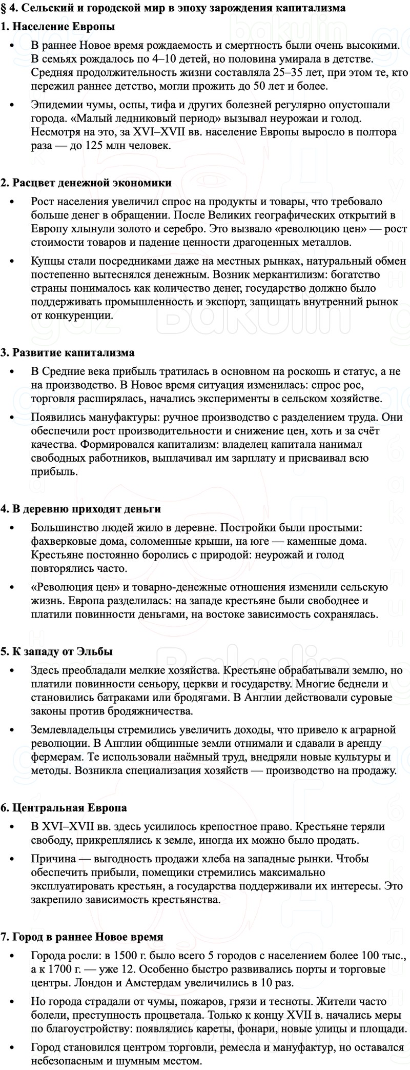 Краткое содержание и пересказ Параграф 4 Сельский городской мир эпоху зарождения капитализма