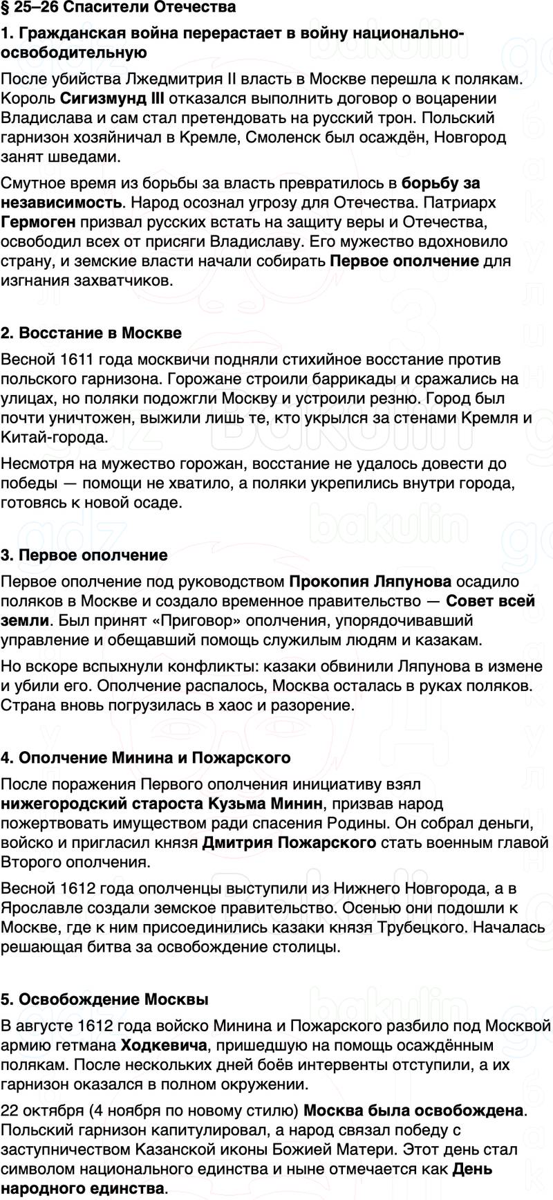 Правильный ответ к заданию из Краткий пересказ содержание История России 7 класс Мединский, Торкунов 2025 Параграф, номер 25-26 бесплатно онлайн