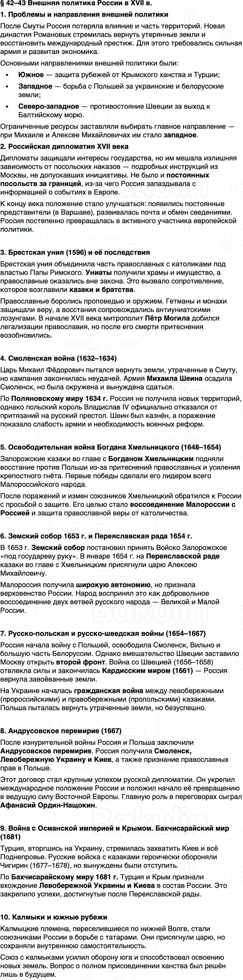 Правильный ответ к заданию из Краткий пересказ содержание История России 7 класс Мединский, Торкунов 2025 Параграф, номер 42-43 бесплатно онлайн
