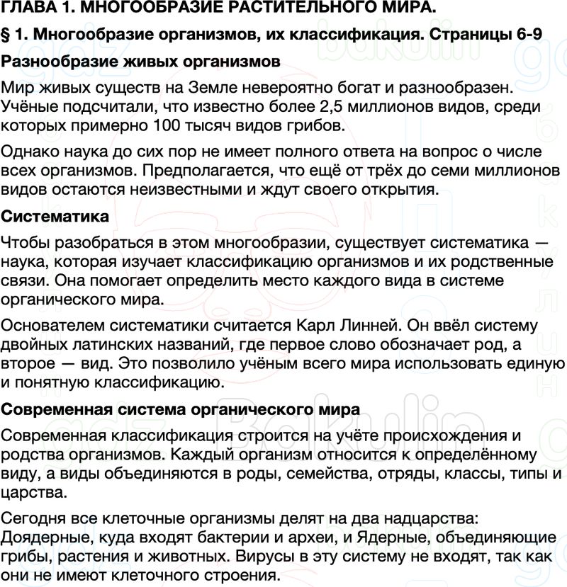 Краткое содержание пересказ Параграф 1 Многообразие организмов, их классификация