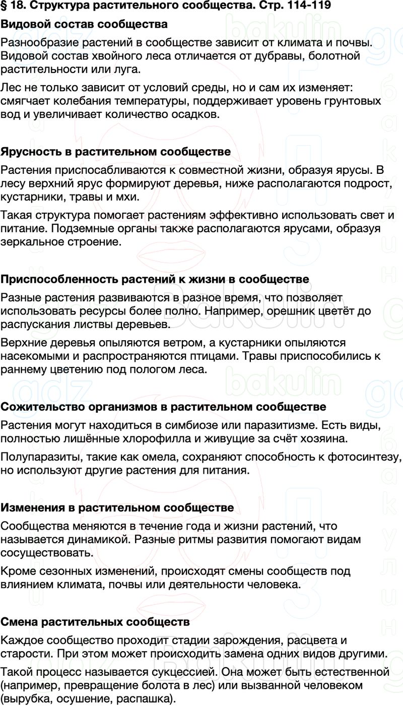 Краткое содержание пересказ Параграф 18 Структура растительного сообщества