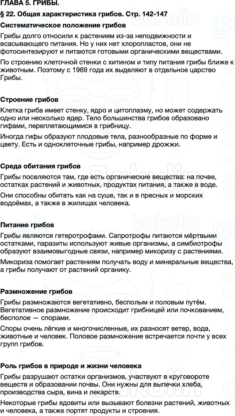 Краткое содержание пересказ Параграф 22 Общая характеристика грибов