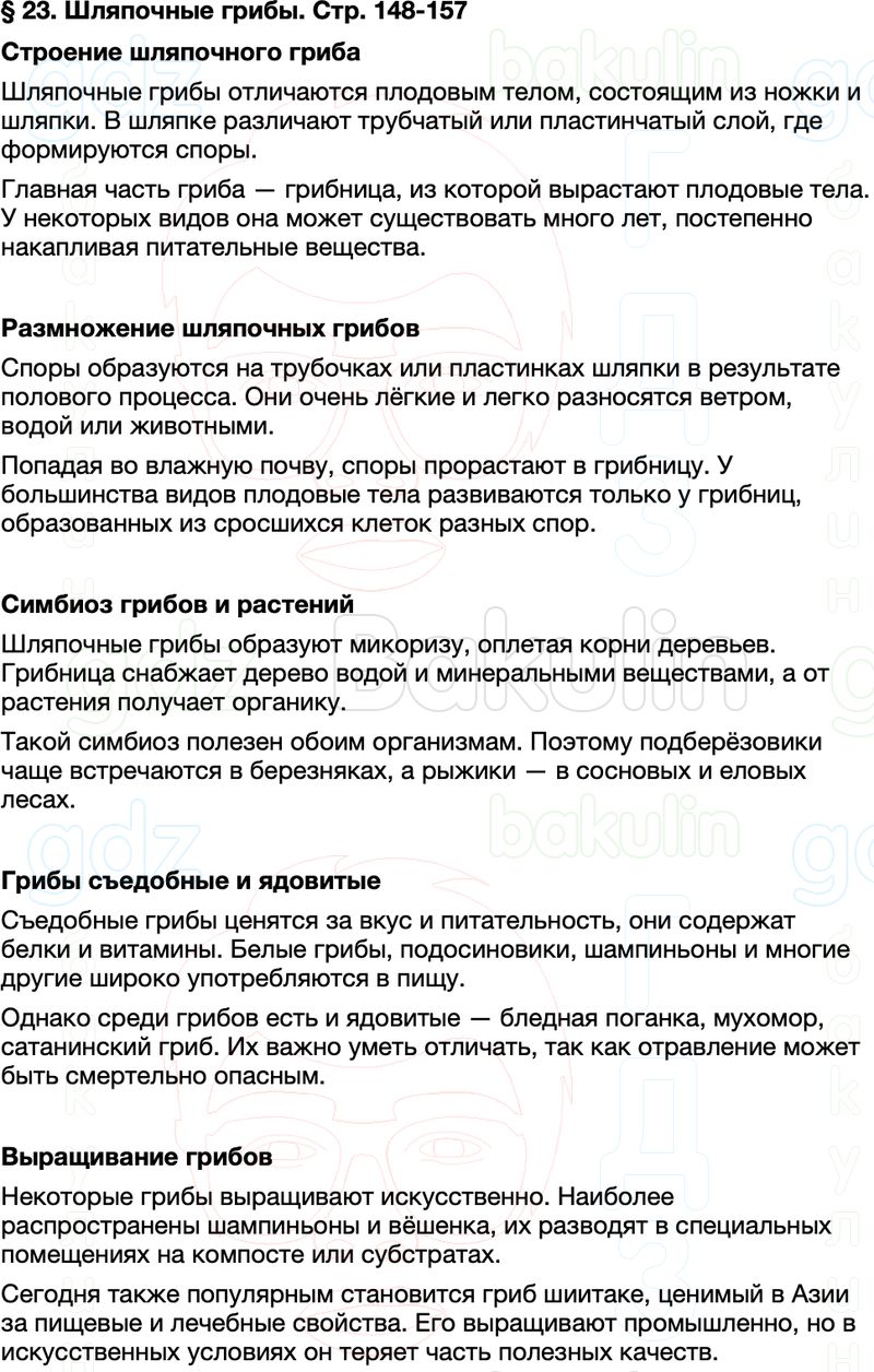 Краткое содержание пересказ Параграф 23 Шляпочные грибы