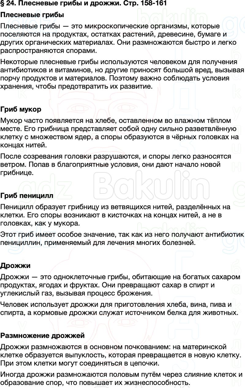 Краткое содержание пересказ Параграф 24 Плесневые грибы и дрожжи