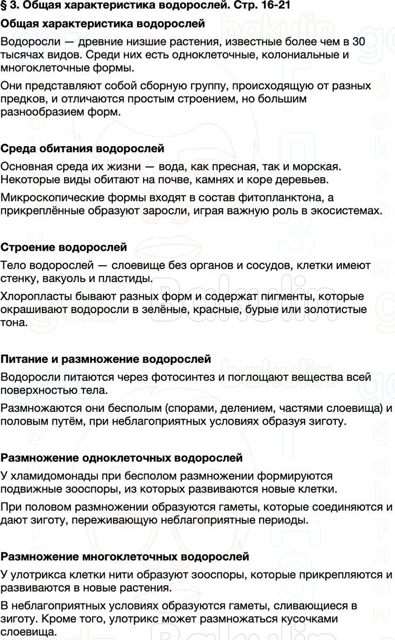 Краткое содержание пересказ Параграф 3 Общая характеристика водорослей