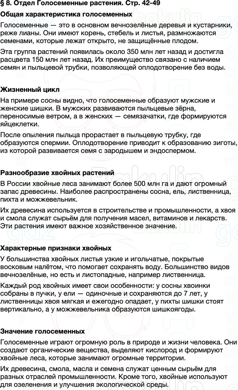 Краткое содержание пересказ Параграф 8 Отдел Голосеменные растения