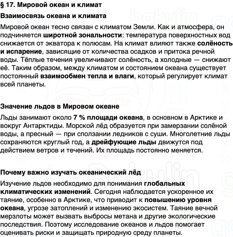 Краткое содержание пересказ Параграф 17. Мировой океан и климат География 7 класс Алексеев, Николина Полярная звезда