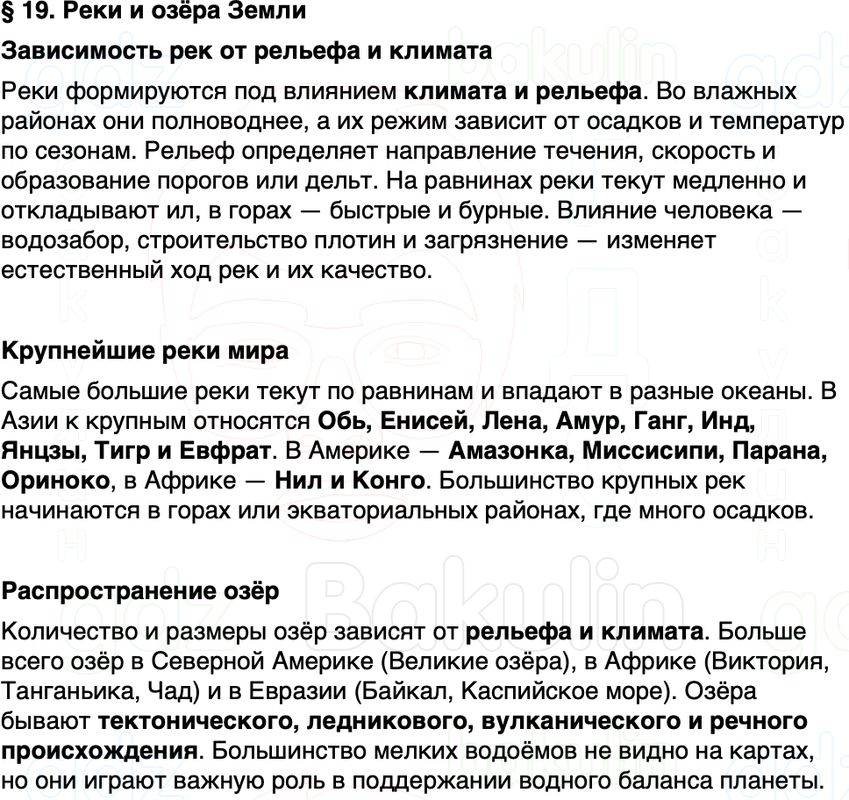Краткое содержание пересказ Параграф 19. Реки и озёра Земли География 7 класс Алексеев, Николина Полярная звезда