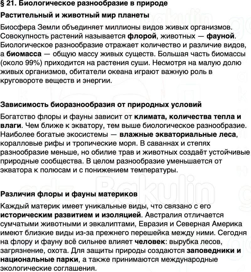 Краткое содержание пересказ Параграф 21. Биологическое разнообразие в природе География 7 класс Алексеев, Николина Полярная звезда