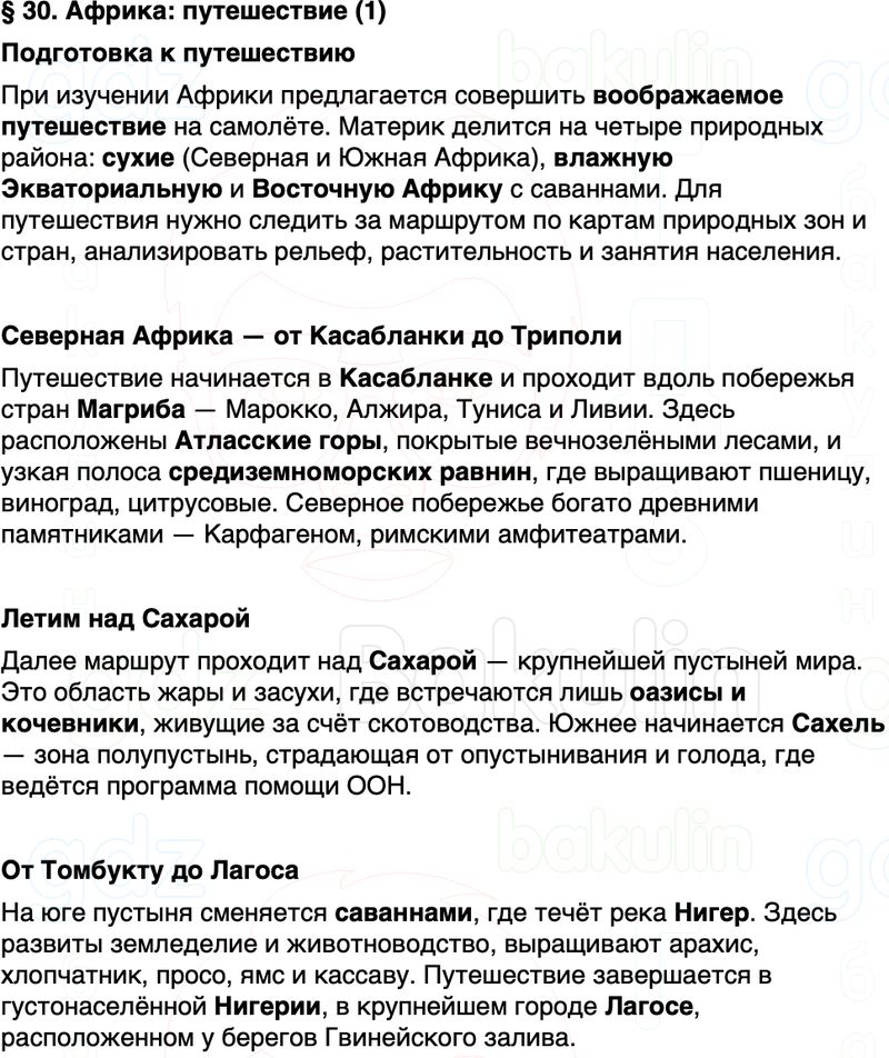 Краткое содержание пересказ Параграф 30. Африка: путешествие (1) География 7 класс Алексеев, Николина Полярная звезда