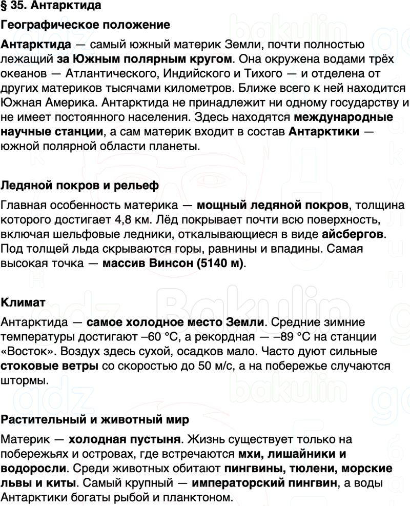 Краткое содержание пересказ Параграф 35. Антарктида География 7 класс Алексеев, Николина Полярная звезда