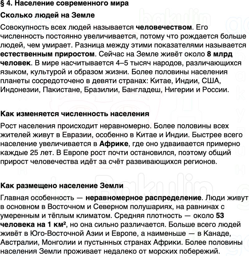 Краткое содержание пересказ Параграф 4. Население современного мира География 7 класс Алексеев, Николина Полярная звезда