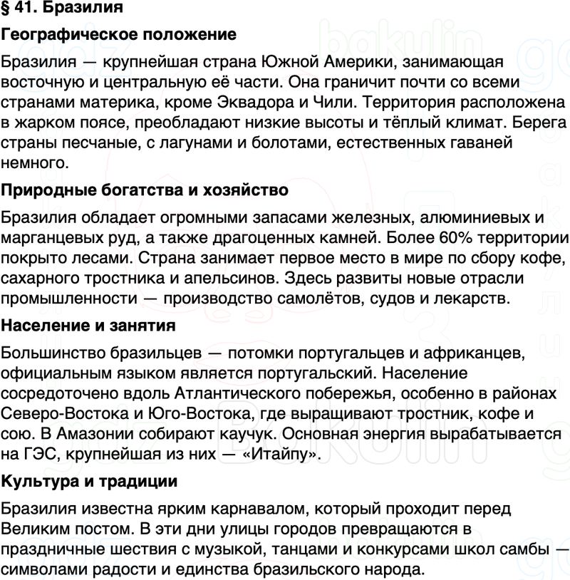 Краткое содержание пересказ Параграф 41. Бразилия География 7 класс Алексеев, Николина Полярная звезда