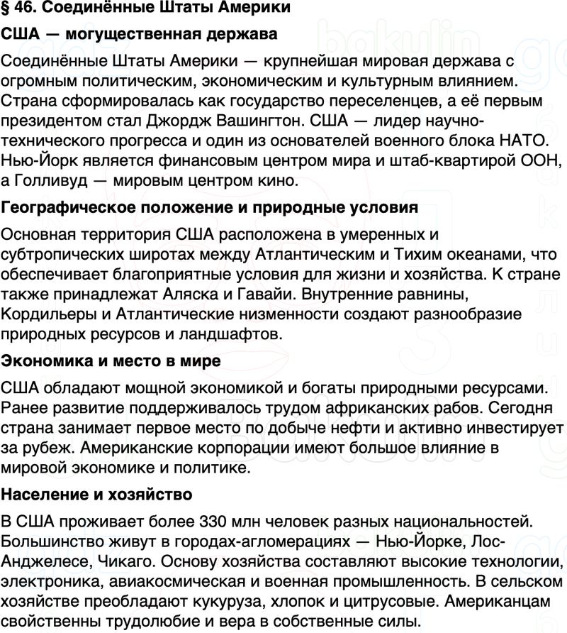 Краткое содержание пересказ Параграф 46. Соединённые Штаты Америки География 7 класс Алексеев, Николина Полярная звезда