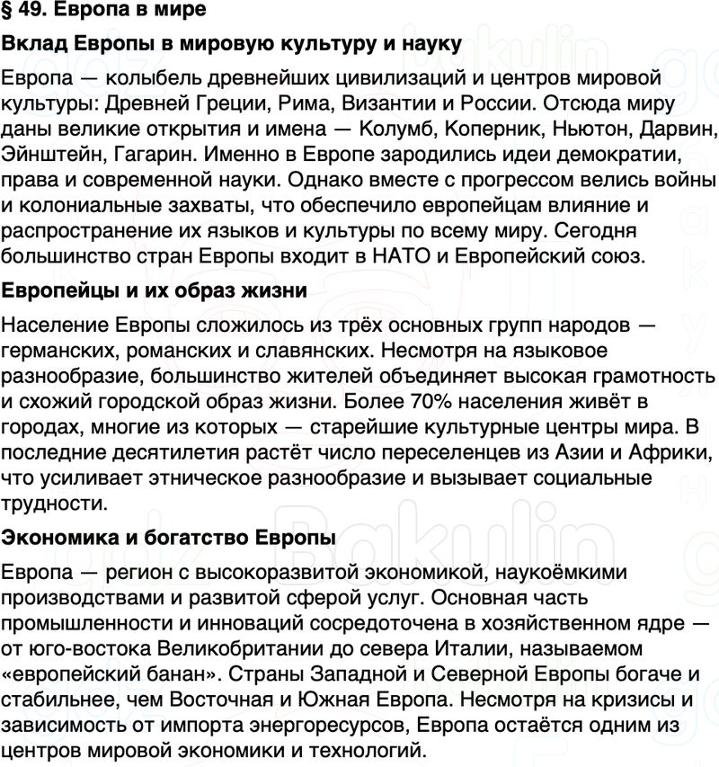 Краткое содержание пересказ Параграф 49. Европа в мире География 7 класс Алексеев, Николина Полярная звезда