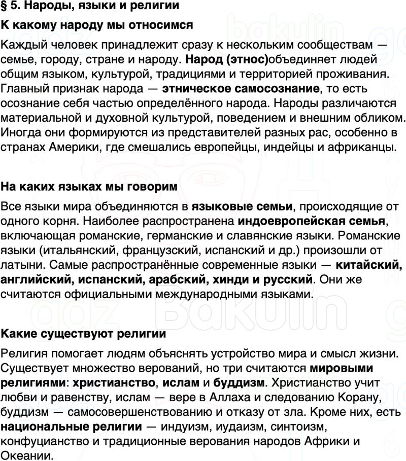 Краткое содержание пересказ Параграф 5. Народы, языки и религии География 7 класс Алексеев, Николина Полярная звезда