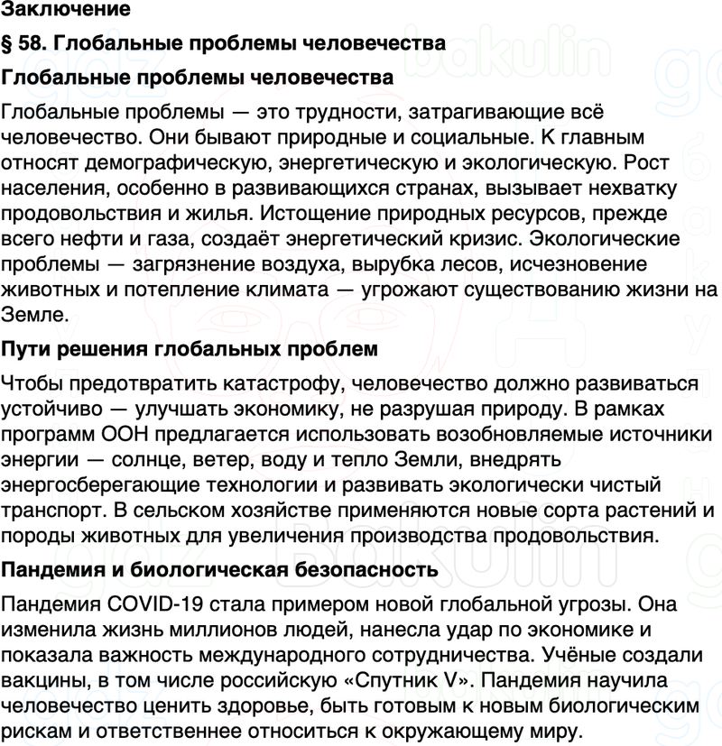 Краткое содержание пересказ Параграф 58. Глобальные проблемы человечества