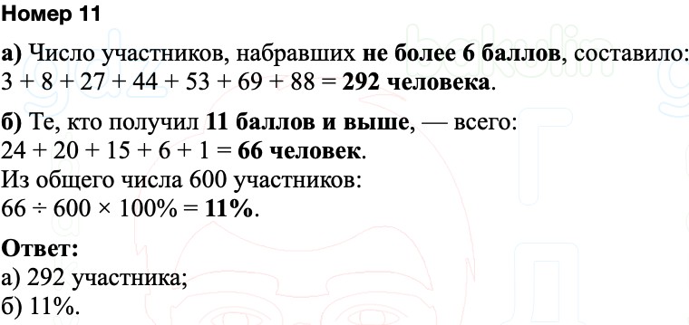 Ответ: 11% участников набрали не менее 11 баллов