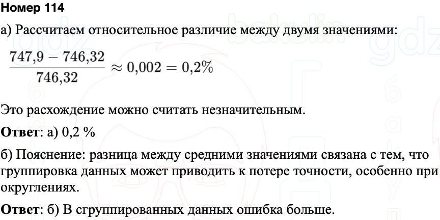 Если найти среднее значение атмосферного давления летом в Москве по данным таблицы 42 (задача 113, а), то полученное значение будет отличаться от среднего значения 746,32 мм рт. ст., которое получается, если данные не группировать (см. табл. 41).