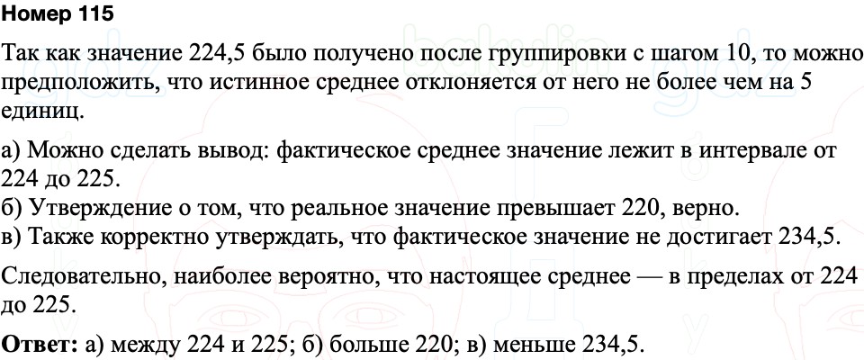 Массив некоторых числовых данных сгруппировали шагом 10. По этим сгруппированным данным нашли среднее значение. Оно получилось равным 224,5. Можно ли утверждать, что настоящее среднее значение: