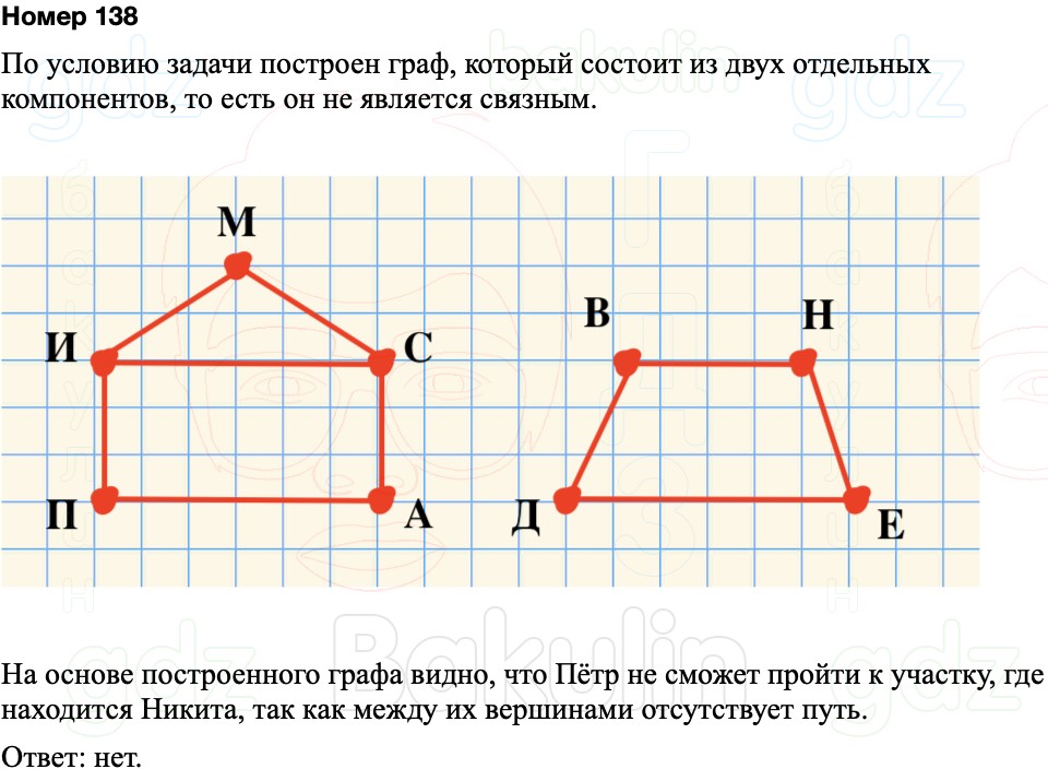 В деревне 9 домов. Соседними будем считать участки, у которых есть общий забор. Известно, что у Петра соседи Иван и Антон, Максим сосед Ивану и Сергею, Виктор - Дмитрию и Никите, а также по соседству живут Евгений с Никитой, Иван с Сергеем, Евгений с Дмитрием и Сергей с Антоном и больше соседей в деревне нет. Может ли Пётр, перелезая через заборы соседних участков, пробраться на участок к Никите?