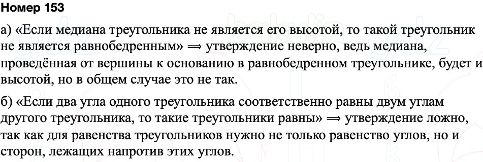 a) «Если медиана треугольника не является его высотой, то такой треугольник не является равнобедренным»;