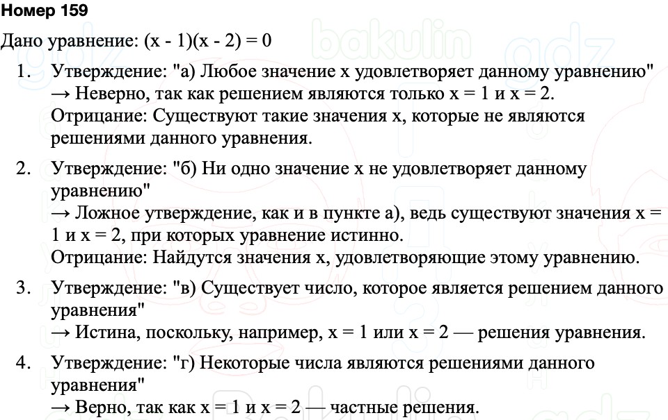 г) «Некоторые числа являются решениями данного уравнения»? Постройте отрицания для ложных утверждений.