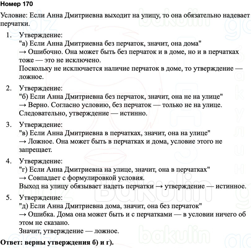 г) «Если Анна Дмитриевна на улице, значит, она в перчатках»;
