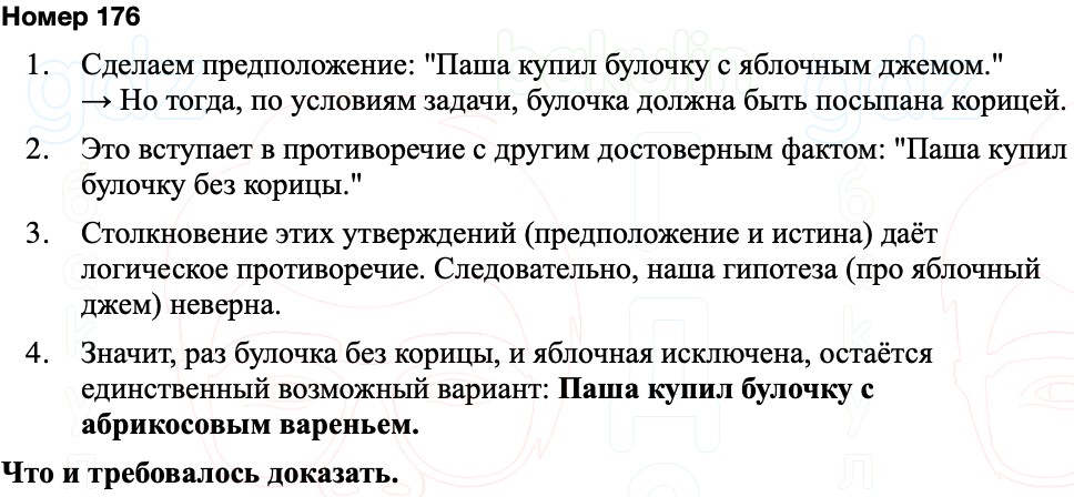 В магазине продаются булочки с яблочным джемом и с абрикосовым вареньем. Все булочки с яблочным джемом посыпаны корицей. Паша купил булочку без корицы. Докажите, что в ней абрикосовое варенье.